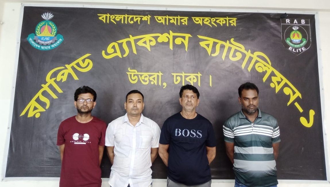 আটকেরা হলেন, মো. গোলাম মাওলা কায়েছ (৫৭), মো. নাসিম রেজা (৩০), মো. আবুল কালাম আজাদ (৪০), মো. পিয়ার হোসেন (৪২)।