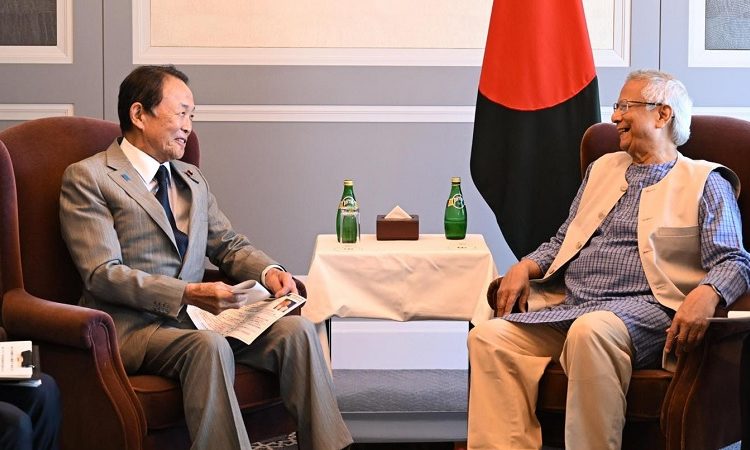 প্রধান উপদেষ্টা অধ্যাপক ড. মুহাম্মদ ইউনূসের সঙ্গে বৈঠক করেছেন জাপানের সাবেক প্রধানমন্ত্রী ও জাপান-বাংলাদেশ পার্লামেন্টারি ফ্রেন্ডশিপ লীগের (জেবিপিএফএল) প্রেসিডেন্ট তারো আসো।