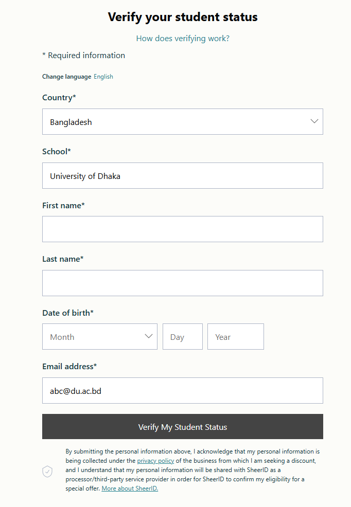 পার্সোনাল ইমেইল দিয়ে সাইন আপ করে পরবর্তীতে স্টুডেন্ট ইমেইল দিয়েও ভেরিফাই করে নিতে পারবেন।