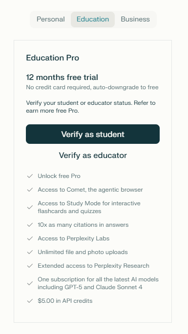পারপ্লেক্সিটি প্রো এমন একটি প্ল্যাটফর্ম যেখানে ওপেনএআই-এর জিপিটি-৫, অ্যানথ্রোপিক-এর ক্লড, গুগল-এর জেমিনি প্রো এবং এক্সএআই-এর গ্রোক-এর মতো বিশ্বের সবচেয়ে উন্নত এআই মডেলগুলো একসাথে পাওয়া যায়। সাধারণত এই সেবাগুলো ব্যবহার করতে মাসিক সাবস্ক্রিপশন ফি দিতে হলেও, শিক্ষার্থী ও শিক্ষকরা এখন এটি বিনামূল্যে পাবেন।