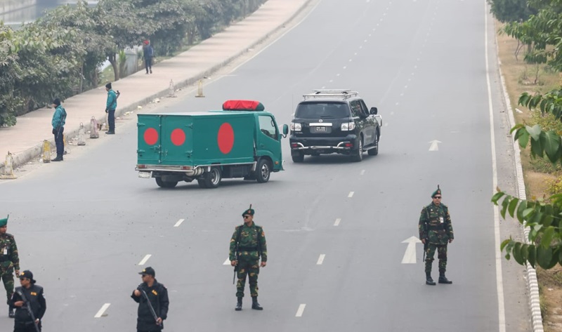 আজ ৩১ ডিসেম্বর বুধবার সকাল ৮টা ৫৫ মিনিটে হাসপাতাল থেকে মরদেহবাহী অ্যাম্বুলেন্স গুলশানের উদ্দেশে রওনা হয়। ঢাকা মহানগর পুলিশ (ডিএমপি) জানিয়েছে, নির্ধারিত রুট অনুসরণ করেই মরদেহ বহন করা হচ্ছে। ঘোষিত রুট অনুযায়ী, এভারকেয়ার হাসপাতাল থেকে ৩৬ জুলাই এক্সপ্রেসওয়ে হয়ে কুড়িল ফ্লাইওভার অতিক্রম করে নৌ সদর দপ্তরের পাশ দিয়ে গুলশান–২ এলাকার বাসভবন ফিরোজায় নেওয়া হয় মরদেহ।