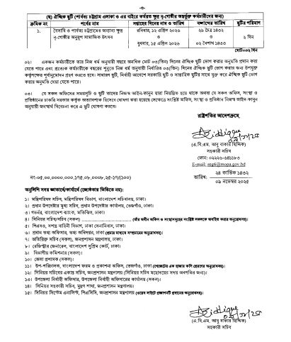 প্রজ্ঞাপনে বলা হয়েছে, সরকার সিদ্ধান্ত গ্রহণ করেছে যে, ২০২৬ সালে বাংলাদেশের সব সরকারি ও আধা–সরকারি অফিস এবং সংবিধিবদ্ধ, স্বায়ত্তশাসিত ও আধা–স্বায়ত্তশাসিত সংস্থাগুলোতে এ ছুটি পালন করা হবে।