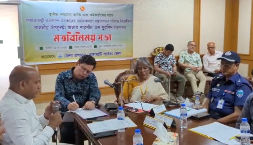 এর আগে সকালে উপদেষ্টা রাঙ্গামাটি সার্কিট হাউজে পৌঁছালে জেলা পরিষদ চেয়ারম্যান কৃষিবিদ কাজল তালুকদার, পুলিশ সুপার ড. ফরহাদ হোসেন, অতিরিক্ত জেলা প্রশাসক মোহাম্মদ রুহুল আমিনসহ অন্যান্য কর্মকর্তারা তাকে ফুলেল শুভেচ্ছা জানান।