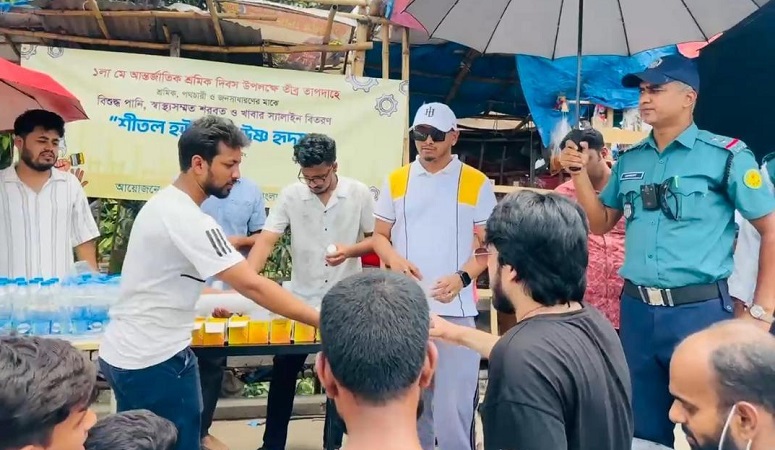 বুধবার ১ মে দুপুর ১২টা নাগাদ রাজধানীর রামপুরা ব্রিজে এ কর্মসূচি পালিত হয়। এসময় সংগঠনের প্রায় ২০ জন সদস্য বিশুদ্ধ খাবার পানি ও খাবার স্যালাইন ও স্বাস্থসম্মত শরবত সরবরাহ করেন।