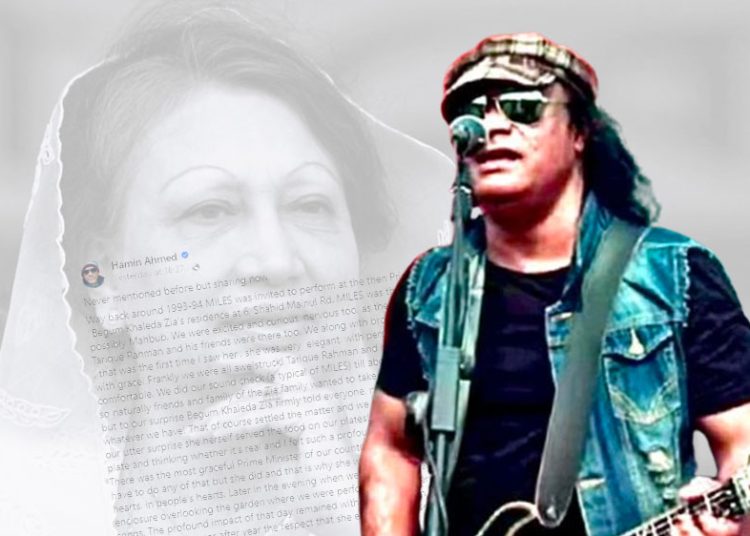 সদ্য প্রয়াত বাংলাদেশের সাবেক প্রধানমন্ত্রী ও বিএনপি চেয়ারপারসন বেগম খালেদা জিয়ার সঙ্গে সংগীতশিল্পী ও ব্যান্ড মাইলসের সদস্যদের একটি স্মরণীয় সাক্ষাতের কথা প্রকাশ করেছেন হামিন আহমেদ। প্রায় তিন দশক আগের সেই অভিজ্ঞতা তুলে ধরে মাইলসের এই শিল্পী বেগম খালেদা জিয়াকে একজন মার্জিত, মানবিক ও শিল্পীবান্ধব মানুষ হিসেবে স্মরণ করেছেন।