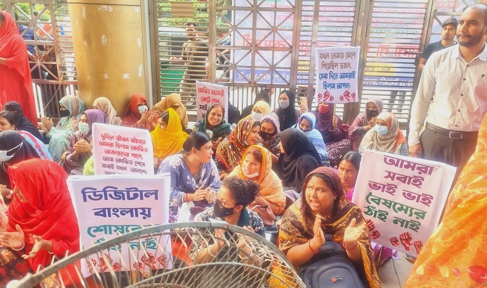 ‘‘যখন তোমায় ফেলে গিয়েছিল স্বজন, সেবা দিতে আমরাই ছিলাম আপন।’’; ‘‘মহামারির দুর্দিনে আমরা ছিলাম রাহবার, এখন কেন আমাদের এই হাহাকার।’’; ‘‘কোভিডকালে আমরা ছিলাম কাণ্ডারি হয় ফাঁসি দাও, নাহয় চাকুরী করো স্থায়ী।’’ এমন নানান প্ল্যাকার্ড হাতে আন্দোলনরতদের দেখা যায়।
