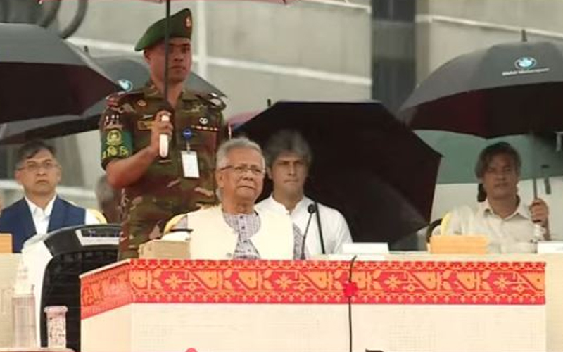 বিকেল সাড়ে চারটার দিকে অনুষ্ঠানস্থলে আসেন অধ্যাপক মুহাম্মদ ইউনূস। এ সময় তার সঙ্গে ছিলেন আইন উপদেষ্টা আসিফ নজরুল, সংস্কৃতি বিষয়ক উপদেষ্টা মোস্তফা সরয়ার ফারুকী ও জাতীয় ঐকমত্য কমিশনের সহ–সভাপতি আলী রীয়াজ।