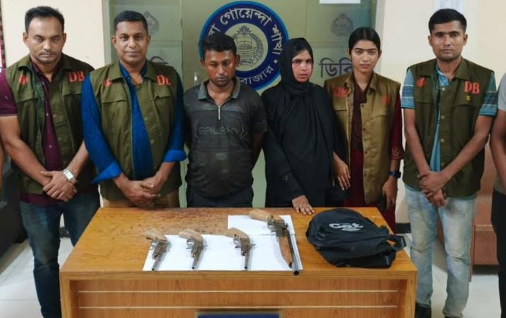 এতে বোটে পাশাপাশি সিটে বসা দুইজন নারী-পুরুষের আচরণ সন্দেহজনক মনে হওয়ায় তাদের সাথে থাকা ব্যাগ তল্লাশী করা হয়। এসময় ব্যাগের ভিতরে পাওয়া যায় দেশিয় তৈরী বিভিন্ন আকারের ৪ টি বন্দুক।