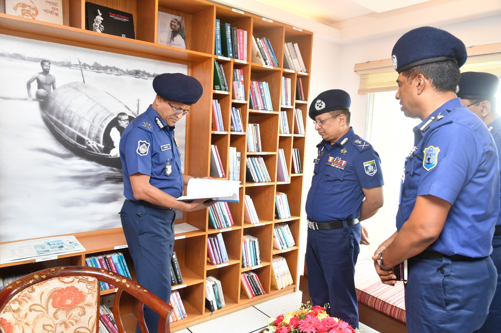 আইজিপি নৌ পুলিশ হেডকোয়ার্টার্সে স্থাপিত ‘বঙ্গবন্ধু কর্নার’ ঘুরে দেখেন। তিনি নৌ পুলিশ কন্ট্রোল রুমের কার্যক্রম পরিদর্শন এবং প্রয়োজনীয় দিকনির্দেশনা প্রদান করেন।