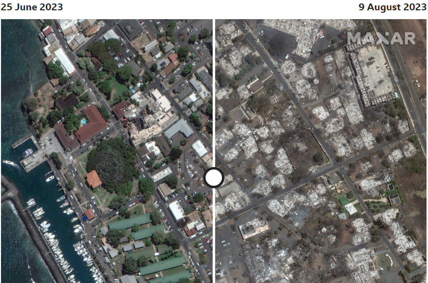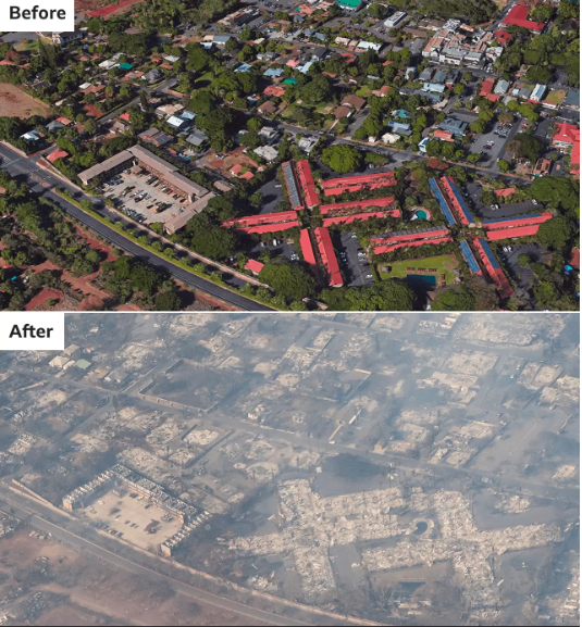 ভয়াবহ দাবানলে বিপর্যস্ত হাওয়াইয়ের বিখ্যাত মাউই দ্বীপ। প্রতিদিনই বেড়ে চলেছে মৃতের সংখ্যা। দাবানলে মাউইয়ের ঐতিহাসিক শহর লাহাইনার একটি বড় অংশই পুরোপুরি ধ্বংস হয়ে গেছে।