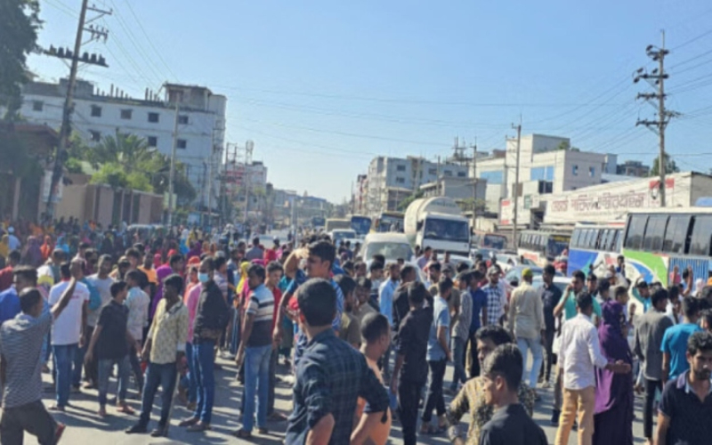 শনিবার ৯ নভেম্বর সকাল সাড়ে ৯টা থেকে বিক্ষোভ শুরু করেন ওই পোশাক কারখানার শ্রমিকরা। এতে ঢাকা-ময়মনসিংহ মহাসড়কে যান চলাচল বন্ধ হয়ে পড়ে। সড়কের দুই পাশে কয়েক কিলোমিটার দীর্ঘ যানজটের সৃষ্টি হয়।