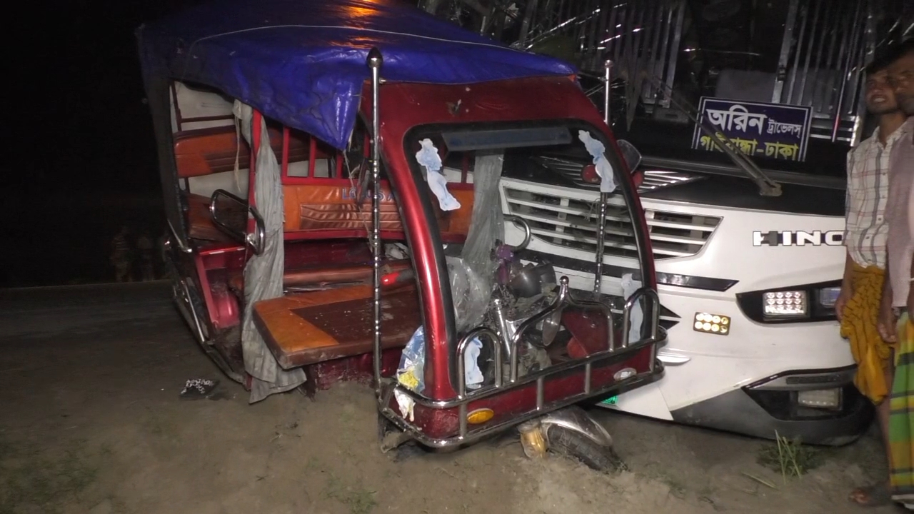 টাঙ্গাইলে ১৩ ঘণ্টা পর একই স্থানে বাসের ধাক্কায় অটোরিক্সার চালকসহ দুইজন নিহত হয়েছেন। এতে আহত হয়েছেন আরও ৬ জন।
