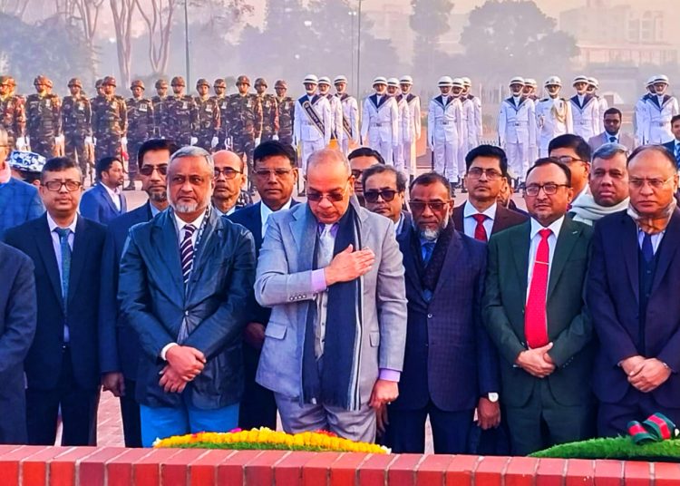মহান মুক্তিযুদ্ধের বীর শহীদদের প্রতি শ্রদ্ধা জানিয়ে জাতীয় স্মৃতিসৌধে পুষ্পস্তবক অর্পণ করেছেন প্রধান বিচারপতি ড. সৈয়দ রেফাত আহমেদ।