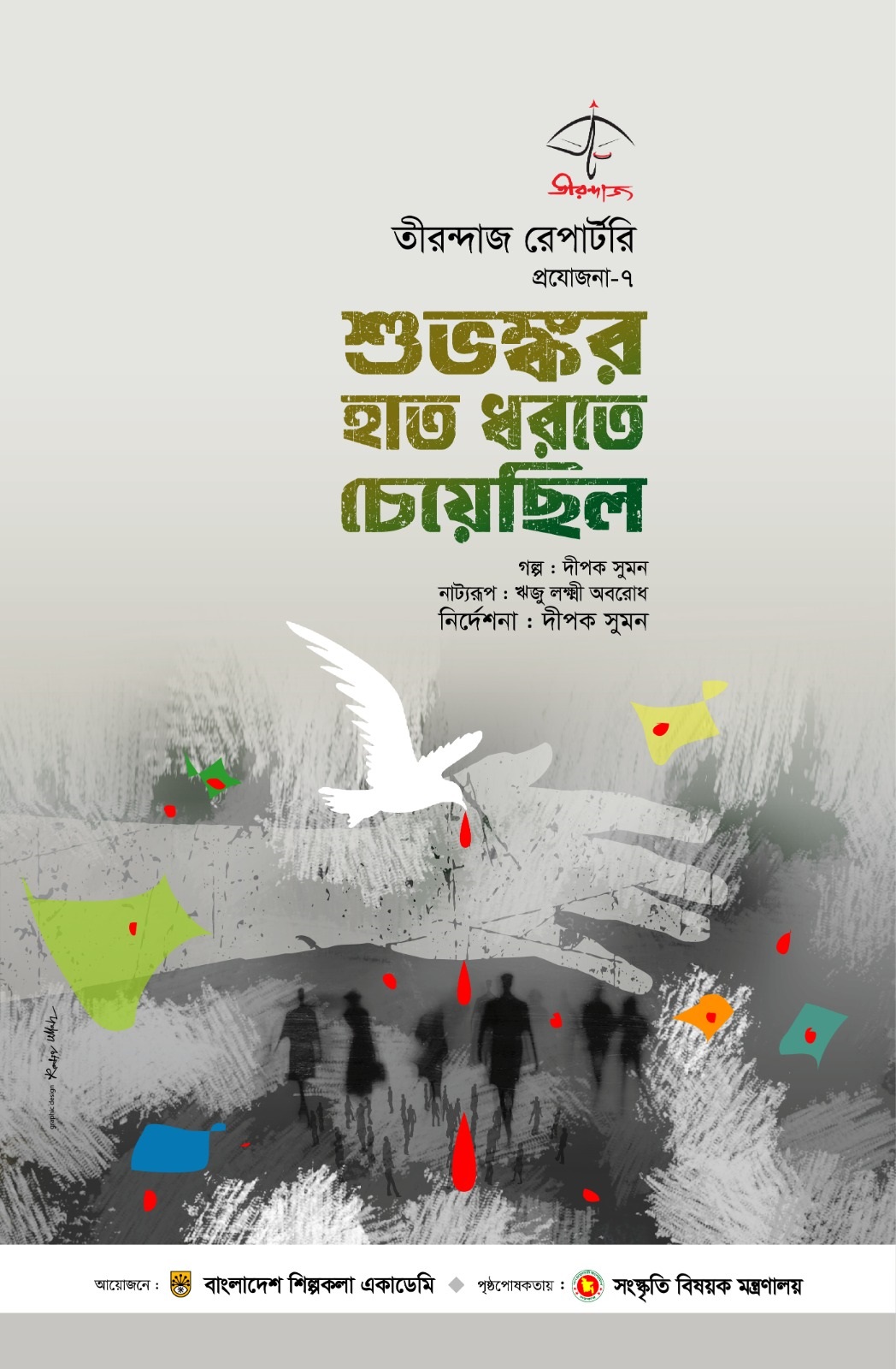 দীর্ঘ বিরতির পর নতুন নাটক নিয়ে মঞ্চে ফিরছে তীরন্দাজ রেপার্টরি। শুক্রবার (১ আগস্ট) বাংলাদেশ শিল্পকলা একাডেমির জাতীয় নাট্যশালার মূল মঞ্চে অনুষ্ঠিত হবে তাদের সপ্তম প্রযোজনা ‘শুভঙ্কর হাত ধরতে চেয়েছিল’-এর উদ্বোধনী মঞ্চায়ন। নাটকটির নির্দেশনায় রয়েছেন দীপক সুমন।