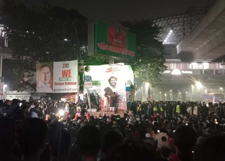 ইনকিলাব মঞ্চের আহ্বায়ক শহীদ শরিফ ওসমান হাদির হত্যাকারীদের গ্রেপ্তার ও বিচার নিশ্চিতের দাবিতে রাতভর শাহবাগ মোড়ে অবস্থান কর্মসূচি পালন করেছেন সংগঠনটির নেতা-কর্মীরা। দাবি আদায় না হওয়া পর্যন্ত শাহবাগে অবস্থান ও অবরোধ কর্মসূচি চালিয়ে যাওয়ার ঘোষণা দিয়েছে ইনকিলাব মঞ্চ।