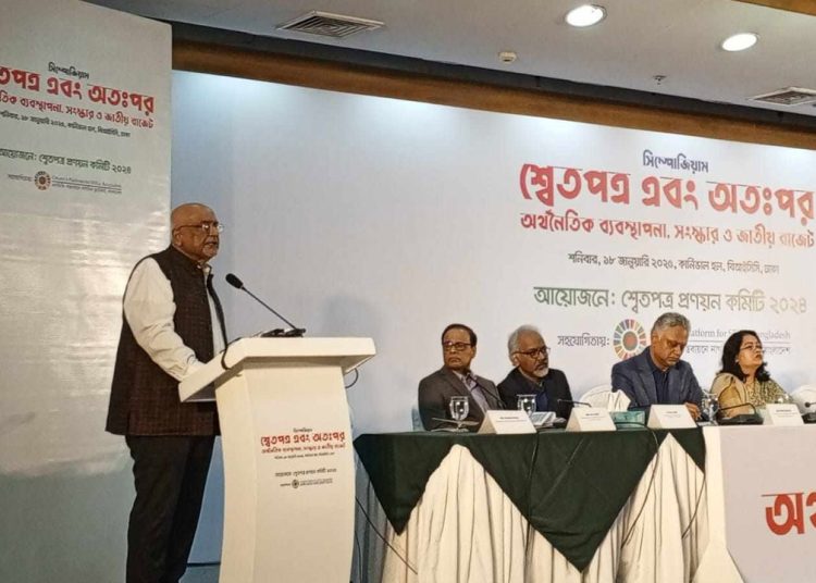 আজ ১৮ জানুয়ারি শনিবার সকালে রাজধানীর আগারগাঁও বিআইসিসিতে শ্বেতপত্র প্রণয়ন কমিটি ২০২৪-এর সিম্পোজিয়াম, অর্থনৈতিক ব্যবস্থাপনা, সংস্কার ও জাতীয় বাজেট নিয়ে এক আলোচনায় তিনি এই মন্তব্য করে বলেন, বিনিয়োগ বাড়ানোর ক্ষেত্রে সরকার যথাযথ মনোযোগ দিচ্ছেনা। সরকারের এই মূহুর্তে বিচ্ছিন্ন পদক্ষেপের বাইরে তেমন কোন অর্থনৈতিক মেনিফেস্টো নাই।