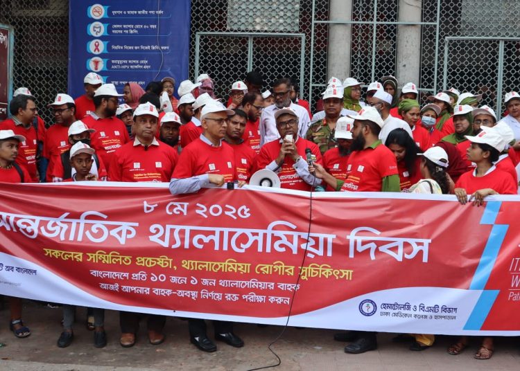 বর্ণাঢ্য আয়োজনে আন্তর্জাতিক থ্যালাসেমিয়া দিবস ২০২৫ উদযাপন করেছে হেমাটোলজি সোসাইটি অব বাংলাদেশ। প্রতিবছরের মতো এবারও দিবসটি উপলক্ষে নানা কর্মসূচির আয়োজন করা হয়।