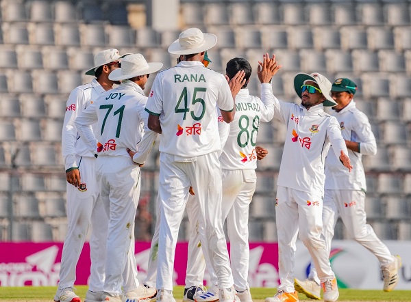 বাংলাদেশের হয়ে ৫০ রান খরচায় ৩ উইকেট নেন মেহেদী হাসান মিরাজ। এছাড়া হাসান মাহমুদ, হাসান মুরাদ ও তাইজুল ইসলাম তিনজনই নেন দুটি করে উইকেট। নাহিদ রানা নেন এক উইকেট।