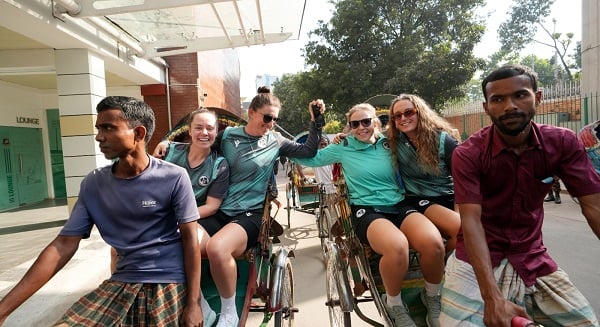 শুক্রবার শের-ই-বাংলা জাতীয় ক্রিকেট স্টেডিয়ামে রিক্সা ভ্রমণ করেছেন আইরিশ মেয়েরা। রিক্সা চালিয়েছেনও কেউ কেউ। নতুন অভিজ্ঞতার পথে আয়ারল্যান্ড ক্রিকেটারদের বেশ উৎফুল্ল দেখা যায়।