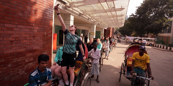শুক্রবার শের-ই-বাংলা জাতীয় ক্রিকেট স্টেডিয়ামে রিক্সা ভ্রমণ করেছেন আইরিশ মেয়েরা। রিক্সা চালিয়েছেনও কেউ কেউ। নতুন অভিজ্ঞতার পথে আয়ারল্যান্ড ক্রিকেটারদের বেশ উৎফুল্ল দেখা যায়।