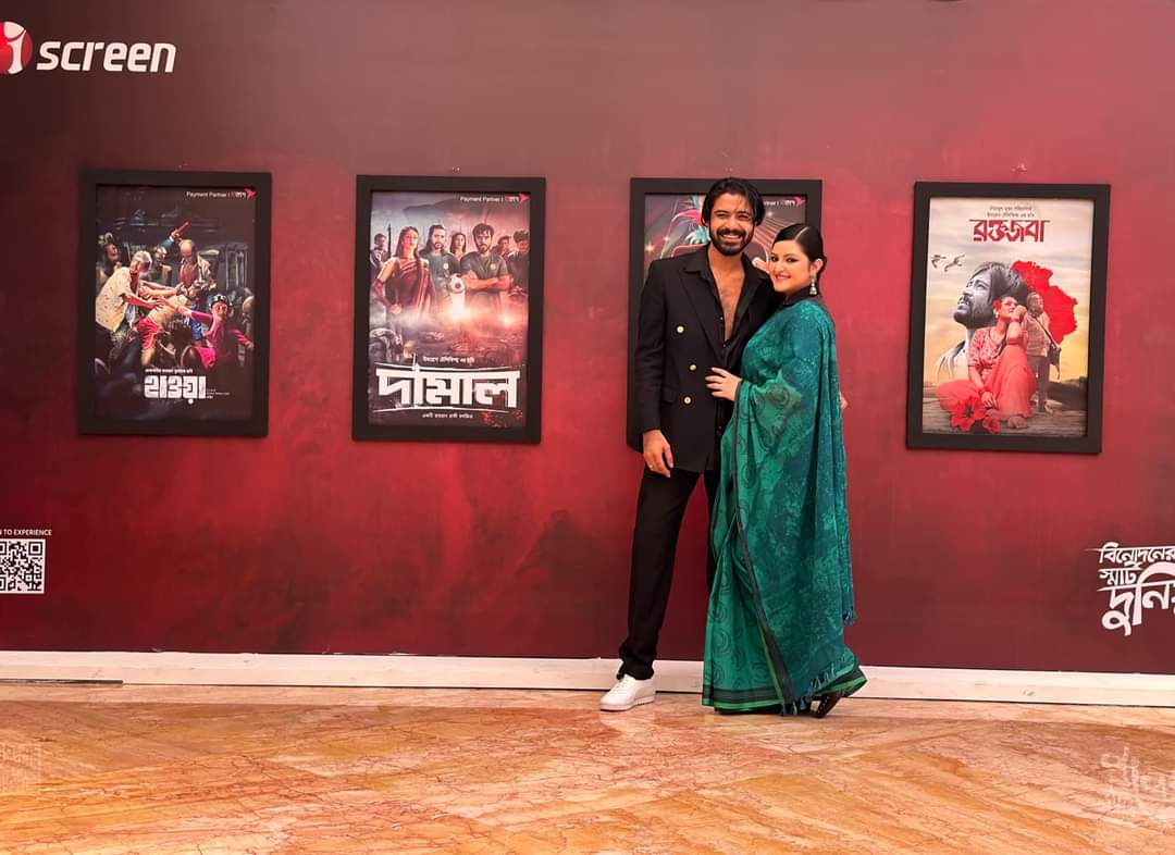 বৃহস্পতিবার আইস্ক্রিনের গালা ইভেন্টে রাজের সঙ্গে অনুষ্ঠানে উপস্থিত ছিলেন স্ত্রী চিত্রনায়িকা পরীমনি। আইস্ক্রিনে রাজের তিন ছবির প্রমোশন পোস্টারের সামনে ছবিও তুলেছেন তারা।