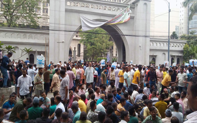 রোববার (১৮ মে) সকাল থেকে ঢাকা দক্ষিণ সিটি কর্পোরেশন নগরভবনের প্রধান ফটকের সামনে ‘ঢাকাবাসী’ ব্যানারে অবস্থান নিয়ে বিক্ষোভ করছেন আন্দোলনকারীরা। এসময় তারা আগামীকাল সোমবার সকাল ১১টা থেকে বিকাল ৩টা পর্যন্ত নগর ভবনের সামনে ধর্মঘটে অবস্থান করবেন বলে ঘোষণা দেন।