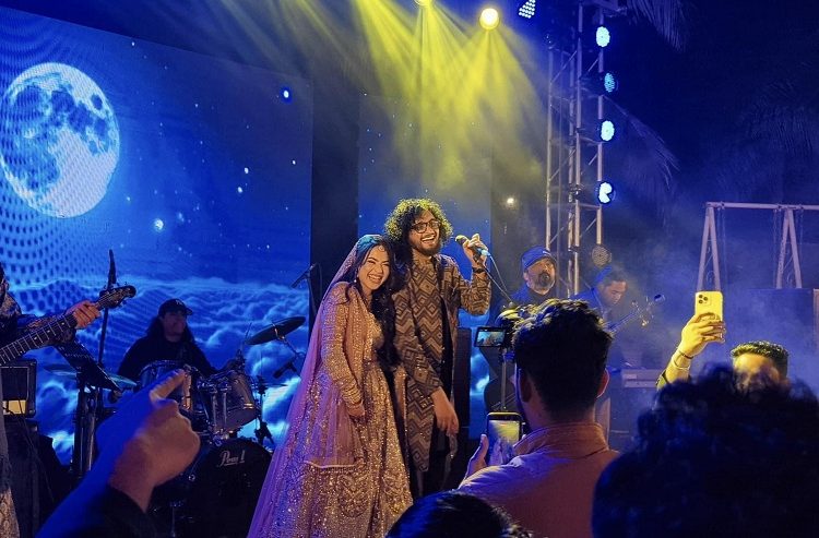 সামাজিক যোগাযোগমাধ্যমে ছড়িয়ে পড়া ছবিতে দেখা যায়, মঞ্চে ব্যান্ডের পারফরম্যান্স চলাকালে ইশতিয়াকের পাশে দাঁড়িয়ে আছেন তার নববধূ। দু’জনকেই দেখা যায় আনন্দ ও হাসিতে ভরপুর।