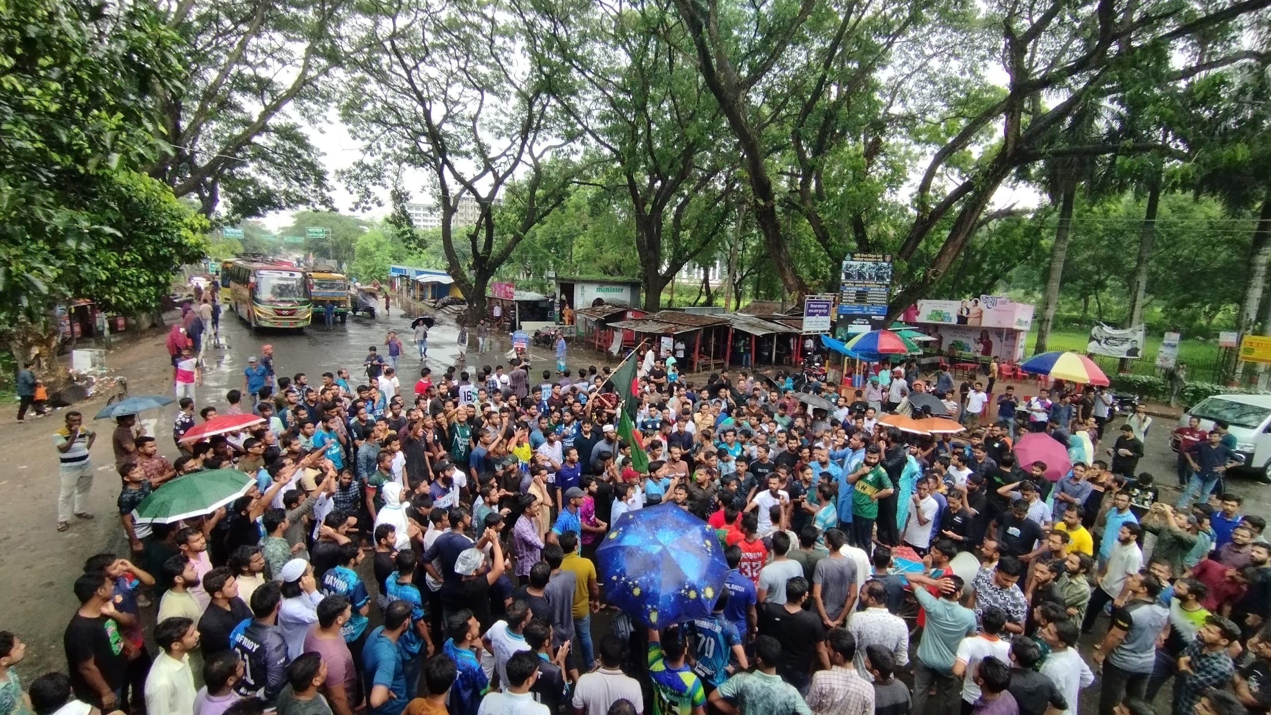 শনিবার (৬ জুলাই) সকাল ১১টায় বিশ্ববিদ্যালয়ের বটতলা প্রাঙ্গণে জড়ো হয়ে বিভিন্ন স্লোগানের মাধ্যমে আন্দোলন করে বিশ্ববিদ্যালয়ের সাধারণ শিক্ষার্থীরা। পরবর্তীতে বিশ্ববিদ্যালয়ের প্রধান ফটকের সামনে কুষ্টিয়া-খুলনা মহাসড়ক অবরোধ করেন শিক্ষার্থীরা। এসময় মহাসড়কে সকল প্রকার যান চলাচল বন্ধ থাকায় যানজটের সৃষ্টি হয়।