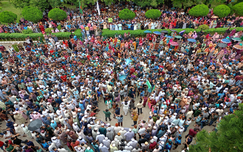 শনিবার প্রশাসন ভবনের সামনে কয়েক হাজার শিক্ষার্থী মানববন্ধন করেন। সেখানে সাধারণ শিক্ষার্থীদের পাশাপাশি বিভিন্ন সংগঠনের নেতাকর্মীরাও উপস্থিত ছিলেন এবং একাত্মতা প্রকাশ করেন।