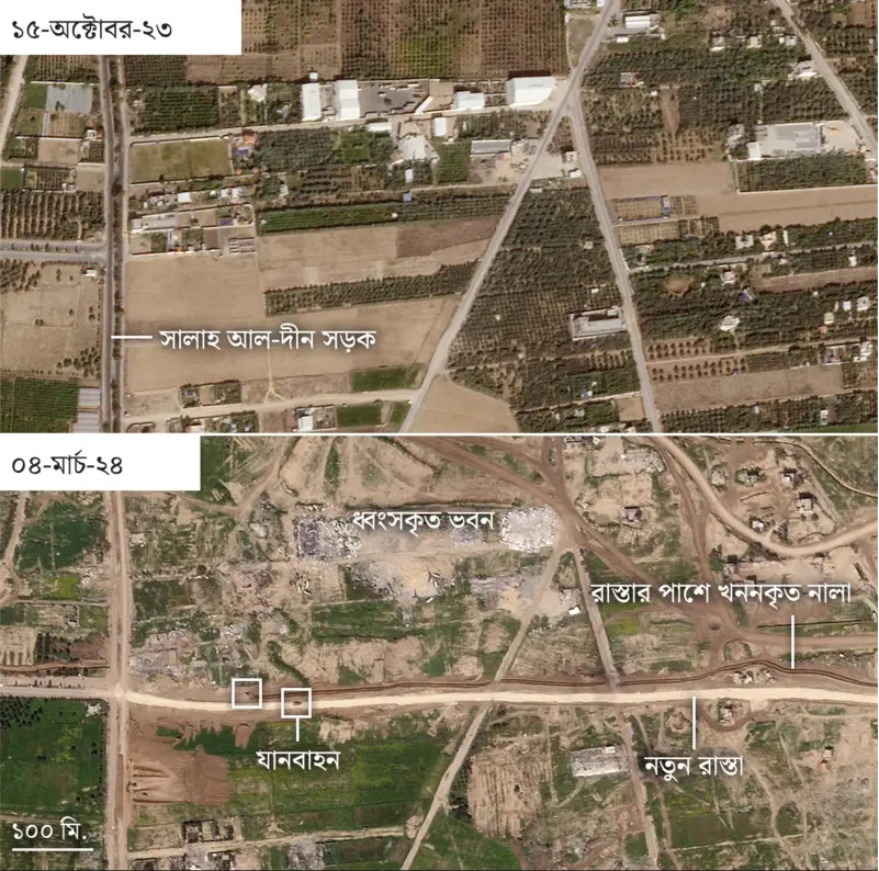 ইসরায়েলের প্রতিরক্ষা বাহিনী গাজার মাঝ বরাবর একটি রাস্তার নির্মাণ কাজ সবেমাত্র শেষ করেছে। রাস্তাটি গাজার পূর্ব থেকে পশ্চিম দিকে গেছে। স্যাটেলাইট চিত্রে এই নতুন রাস্তাটি দেখা গেছে। বিশ্লেষকরা নতুন রাস্তাটি নিয়ে বেশ উদ্বেগ প্রকাশ করেছেন।