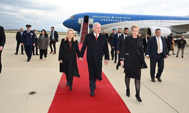 সোমবার (৭ এপ্রিল) বার্তা সংস্থা রয়টার্সসহ একাধিক আন্তর্জাতিক সংবাদমাধ্যমের প্রতিবেদন বলা হয়, রোববার স্থানীয় সময় রাতে স্ত্রী সারাকে নিয়ে ওয়াশিংটনে পৌঁছেন বেনিয়ামিন নেতানিয়াহু।
