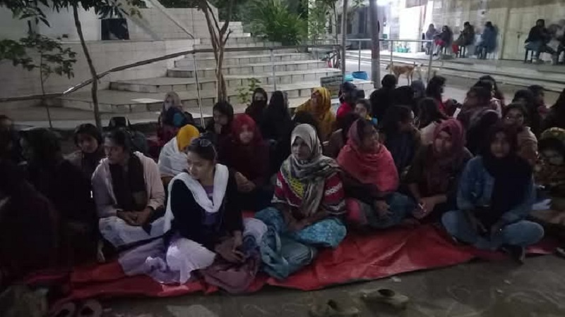 রোববার (১২ জানুয়ারি) দিবাগত রাত ১২টার দিকে বঙ্গমাতা শেখ ফজিলাতুন্নেছা মুজিব হলের ছাত্রীরা ক্যাম্পাসে আসেন এবং অনশনস্থলে উপস্থিত শিক্ষার্থীদের পাশে বসেন।
