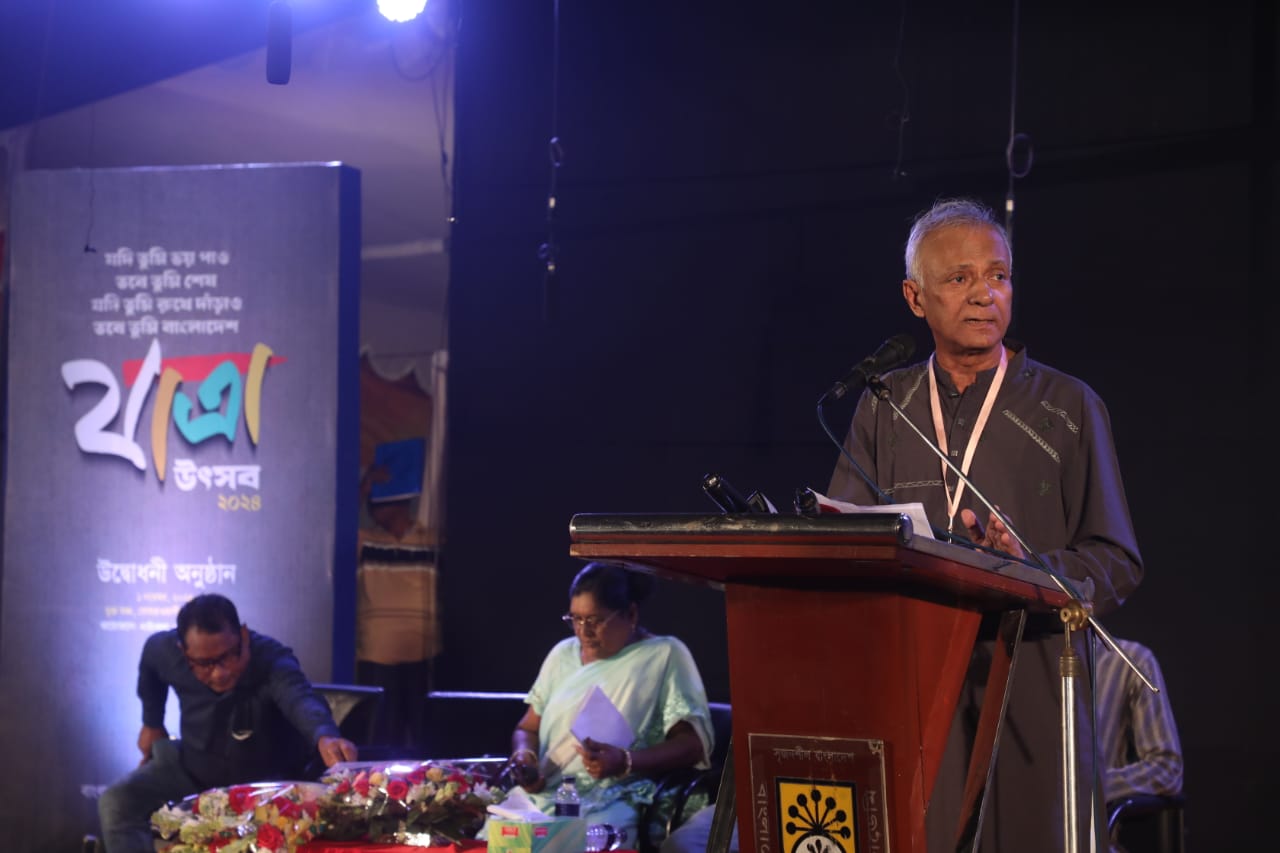 অনুষ্ঠানে সভাপতিত্ব করেন বাংলাদেশ শিল্পকলা একাডেমি মহাপরিচালক, নাট্য নির্দেশক ও শিক্ষক ড. সৈয়দ জামিল আহমেদ। সভাপতির বক্তব্যে শুরুতেই জুলাই অভ্যুত্থানে নিহত ও আহতদের প্রতি শ্রদ্ধা জ্ঞাপন করে মহাপরিচালক বলেন- “বিদ্যুত চমকের মত দ্রুতবেগে ঘটে যাওয়া এক নির্ভয় অভ্যুত্থানের অগ্নিগর্ভ ছিঁড়ে জন্ম নিয়েছে নতুন এই বাংলাদেশ।”