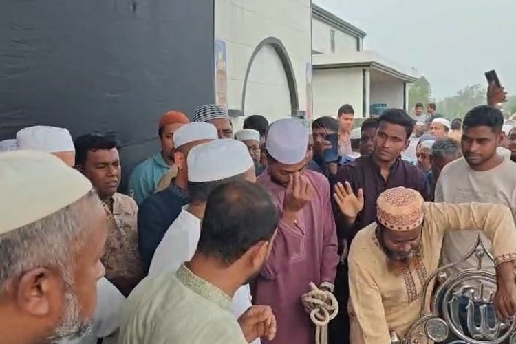 পুলিশের একটি প্রিজন ভ্যানে করে তাকে পরশুরাম উপজেলার সলিয়া ঈদগাহ মাঠে নেওয়া হয়। সকাল ১১টায় সেখানে জানাজা অনুষ্ঠিত হয়। জানাজা শেষে মরদেহ সলিয়া পারিবারিক কবরস্থানে দাফন করা হয়।