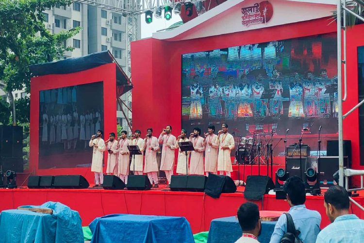 মঙ্গলবার (৫ আগস্ট) দুপুর ১২টায় সাইমুম শিল্পীগোষ্ঠীর পরিবেশনার মধ্য দিয়ে মূল অনুষ্ঠান শুরু হয়। বেলা ১১টায় অনুষ্ঠান শুরু হওয়ার কথা থাকলেও কিছুটা বিলম্বে এটি শুরু হয়। উদ্বোধনী পরিবেশনায় সাইমুম শিল্পীগোষ্ঠী পরিবেশন করে ওস্তাদ তোফাজ্জেল হোসেনের লেখা ‘এই দেশ আমার বাংলাদেশ, আমার ভালোবাসা’ গানটি।