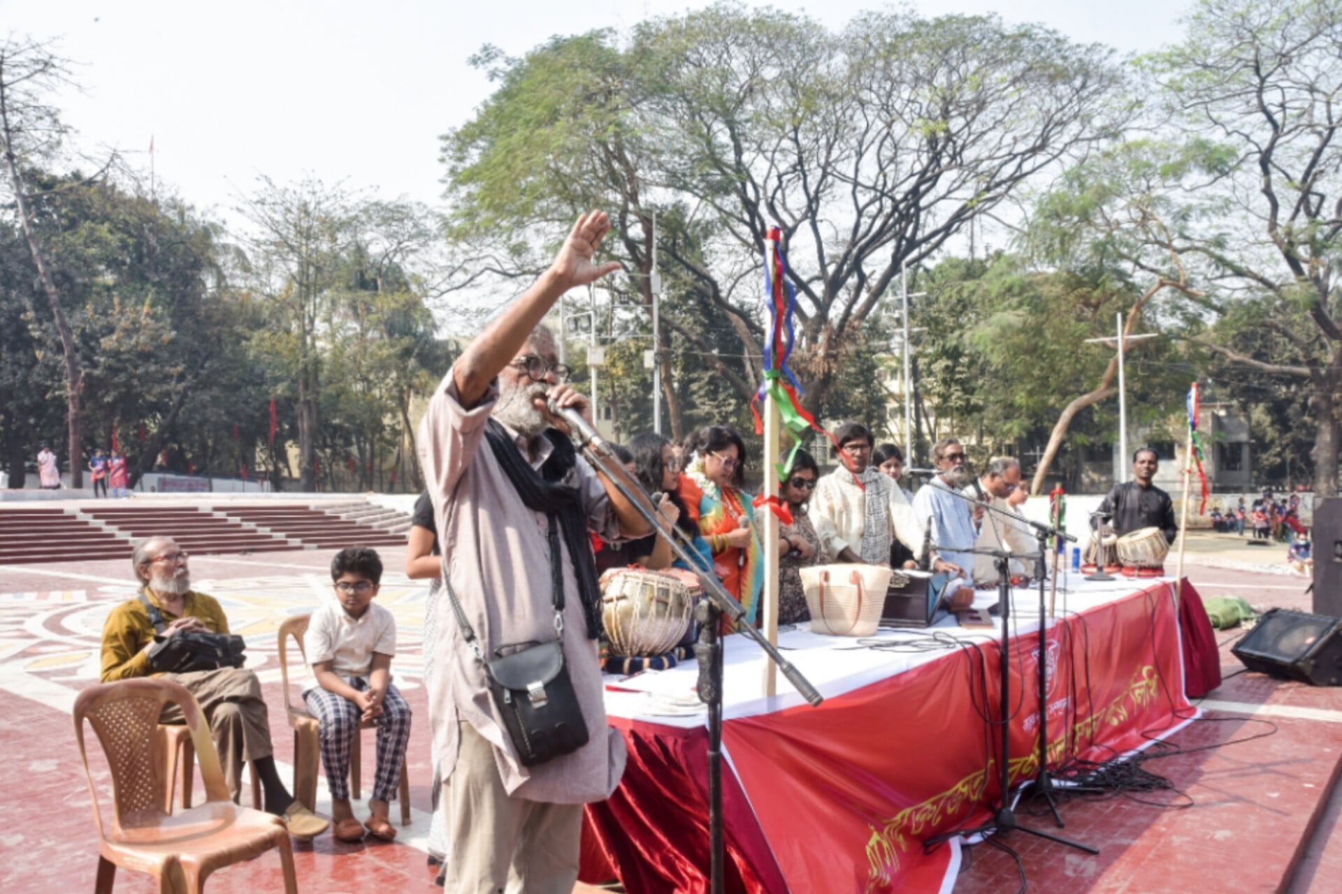 সকাল থেকেই শহীদ মিনার প্রাঙ্গণ মুখর হয়ে ওঠে শিক্ষার্থী, শিক্ষক ও অভিভাবকদের উপস্থিতিতে।