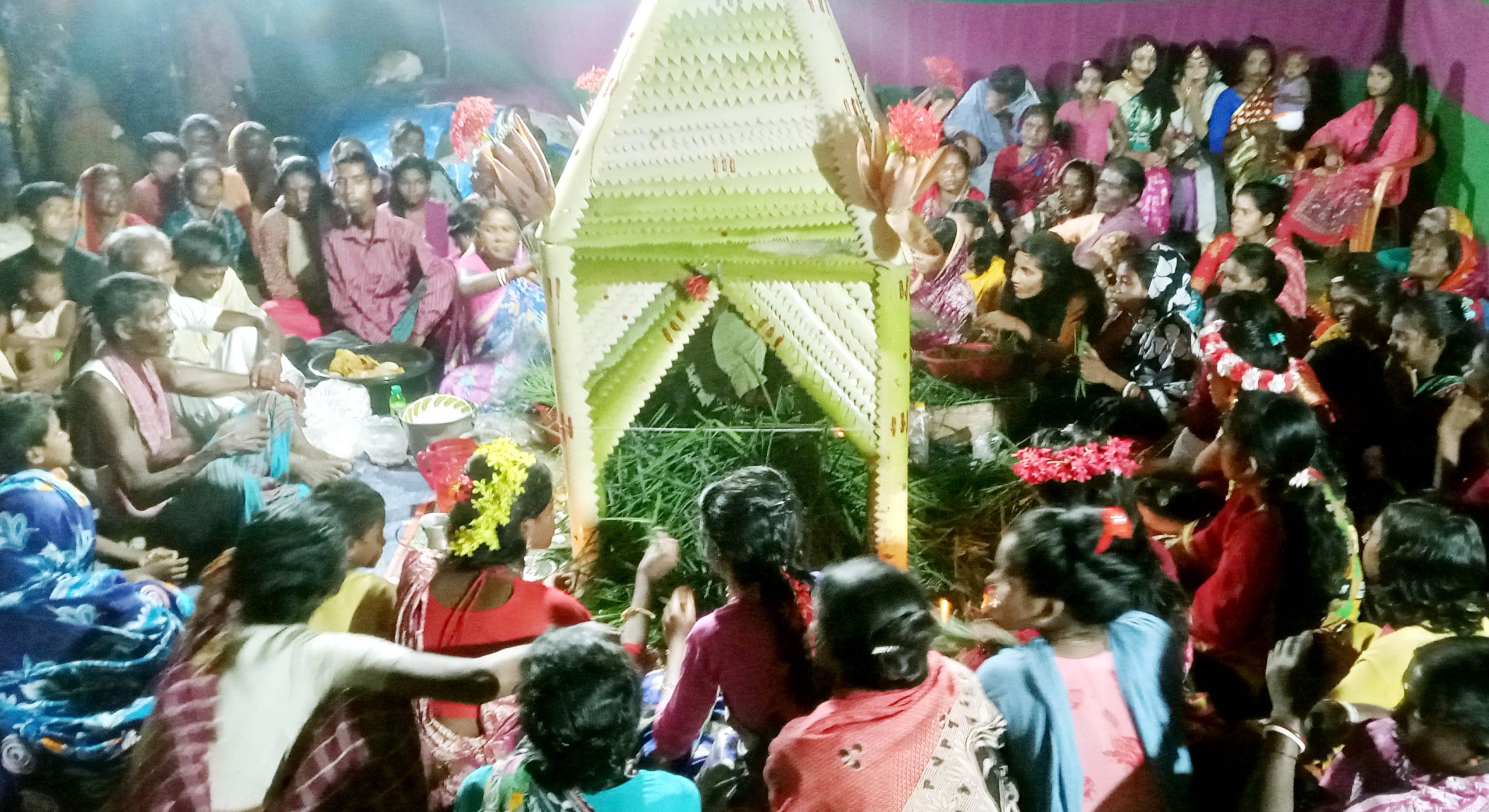 দিনরাত প্রখর রোদ বৃষ্টি উপেক্ষা করে মাঠেঘাটে খেটে খাওয়া সোনার মানুষগুলোর মধ্যে করম পুজার উৎসবকে ঘিরে আনন্দের আমেজ বইছে। দলবেঁধে ছোট-বড় আদিবাসী নারী-পুরুষ মন্দিরের চারপাশে ঢাক-ঢোল ও নানা বাদ্যযন্ত্রের তালে নাচ-গান করছেন।