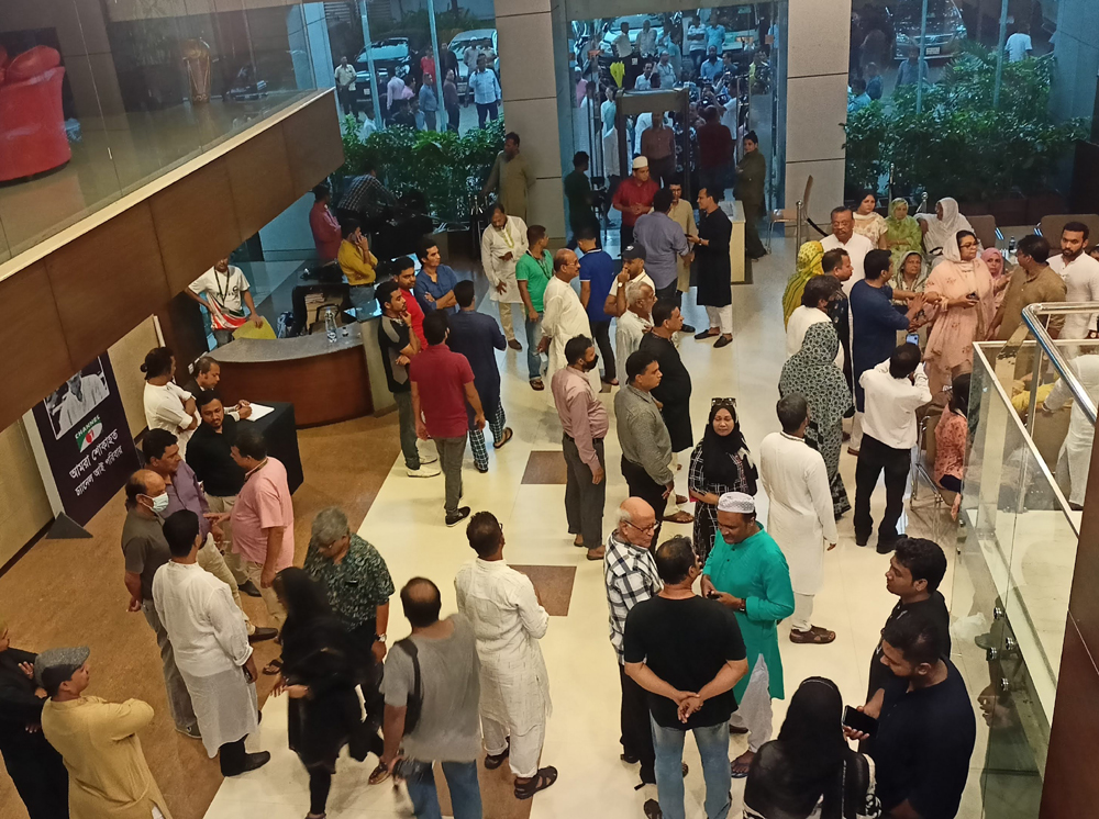 দুপুর ২টা। তাকে বহন করা গাড়িটি রাখা চ্যানেল আইয়ের চেতনা চত্বরে। সংগীত ও সিনেমার মানুষ সহ শেষ বার প্রিয় মুখটি দেখতে ভিড় করেন অনেকে। এসময় চ্যানেল আইয়ের মূল ফটক দিয়ে বের হতে দেখা যায় আরেক কিংবদন্তীতূল্য সংগীতশিল্পী খুরশীদ আলমকে। তিনি দূর থেকে দাঁড়িয়ে লাশবাহী গাড়িটির দিকে একদৃষ্টিতে তাকিয়ে ছিলেন। এসময় ‘মা গো মা’ খ্যাত এই সংগীতশিল্পীকে একটু জোর করেই লাশবাহী গাড়িটির দিকে নিয়ে আসেন একজন।