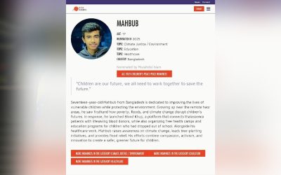 পরিবেশ, জলবায়ু কার্যক্রম, শিক্ষা ও স্বাস্থ্যসেবায় তাঁর অবদানের স্বীকৃতিস্বরূপ এ মনোনয়ন পেয়েছেন তিনি।