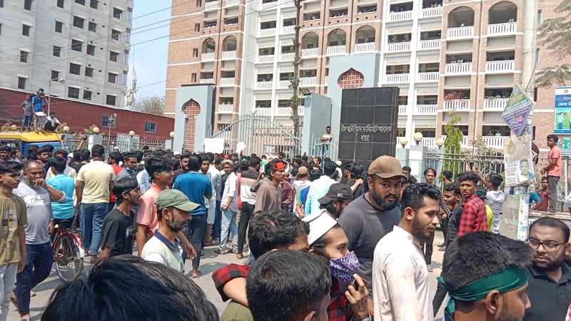 রোববার (৯ মার্চ) সকাল ১১টা থেকে শিক্ষার্থীরা আদালত প্রাঙ্গনে অবস্থান করছে। প্রতিবেদনটি লেখার সময় চীফ জুডিশিয়াল ম্যাজিস্ট্রেট মো. আব্দুল মতিন, সেনাবাহিনীর প্রতিনিধি, পুলিশ এবং ১০ জন ছাত্র প্রতিনিধিদের সমন্বয়ে মতবিনিময় সভা চলছে।
