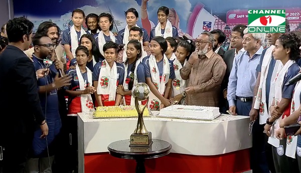 দুপুর ১২টার কিছু আগে শিরোপাজয়ী ফুটবল দল জড়ো হয়েছিল চ্যানেল আই ভবনে। বাফুফের বাস থেকে শুরুতে ট্রফি হাতে নামেন মারিয়া মান্ডা। পরে একে একে বাকি ফুটবলারদের সঙ্গে নেমে আসেন জয়ী কোচ গোলাম রব্বানি ছোটন। ফুলের চাদর পেরিয়ে, সংবর্ধনা, কেক কাটা-সহ হরেক আয়োজন শেষে জমে আড্ডার আসর।