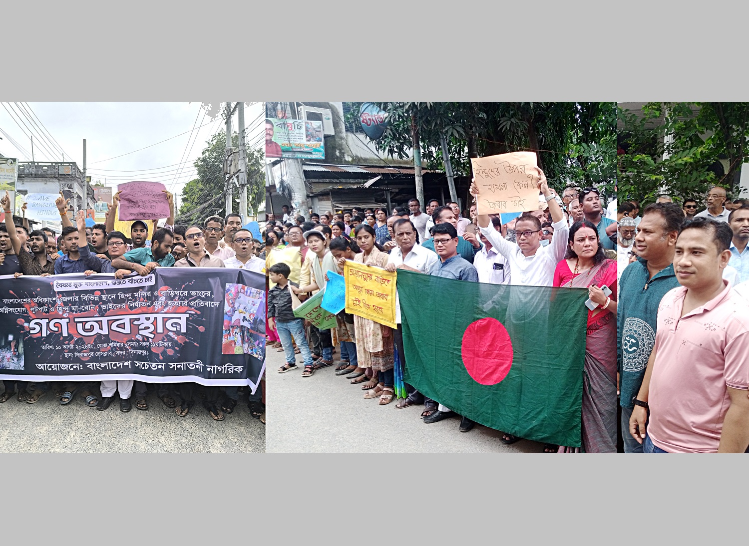 দেশের বিভিন্ন স্থানে হিন্দু মন্দির ও বাড়িঘরে হামলা-ভাংচুর, অগ্নিসংযোগ, লুটপাট এবং হিন্দু মা-বোন-ভাইদের নির্যাতন ও হত্যার প্রতিবাদে দিনাজপুরে গণ-অবস্থান ও বিক্ষোভ মিছিল কর্মসূচি করেছে বাংলাদেশ সচেতন সনাতনী নাগরিক।