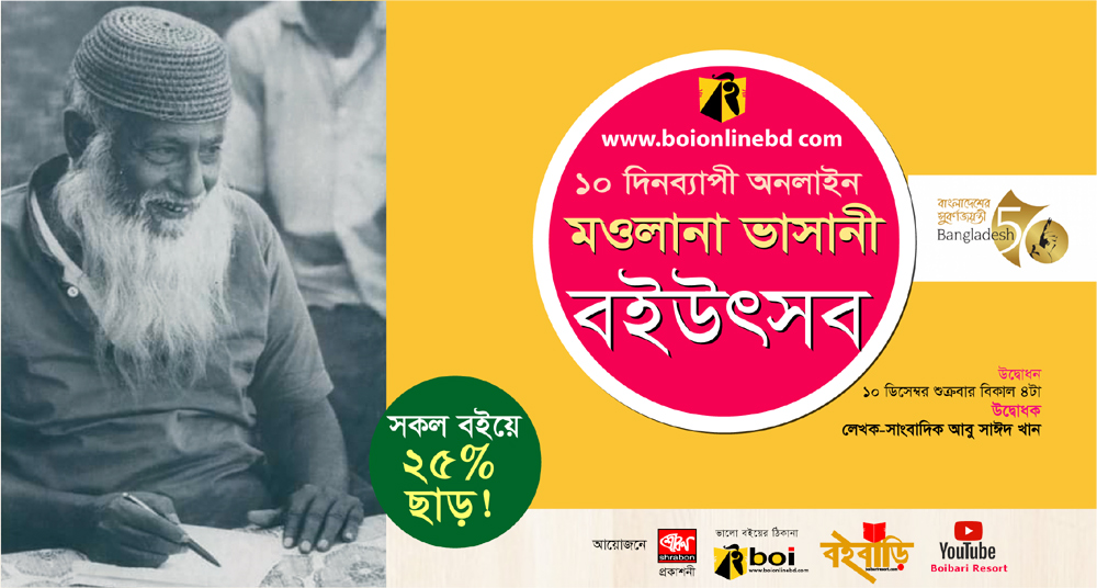 boionlinebd.com– এই বই উৎসবের আয়োজন করেছে। মওলানা ভাসানীর লেখা বইসহ তাকে নিয়ে প্রকাশিত ২৫টি বই ২৫ শতাংশ ছাড়ে পাওয়া যাবে এই বই উৎসবে।