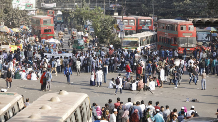 বেতন-ভাতা বৃদ্ধির দাবিতে শাহবাগ মোড় অবরোধ করেছেন বঙ্গবন্ধু শেখ মুজিব মেডিকেল বিশ্ববিদ্যালয়ের (বিএসএমএমইউ) ও বিসিপিএস’র অধিভুক্ত পোস্ট গ্র্যাজুয়েট ট্রেইনি চিকিৎসকরা। দাবি মেনে নিতে আন্দোলনরত চিকিৎসকদের কাছে ৭২ ঘণ্টার সময় চেয়েছে মন্ত্রণালয়। তবে চিকিৎসকরা তাতে রাজি না হওয়ায় দেখা দিয়েছে অনিশ্চয়তা।