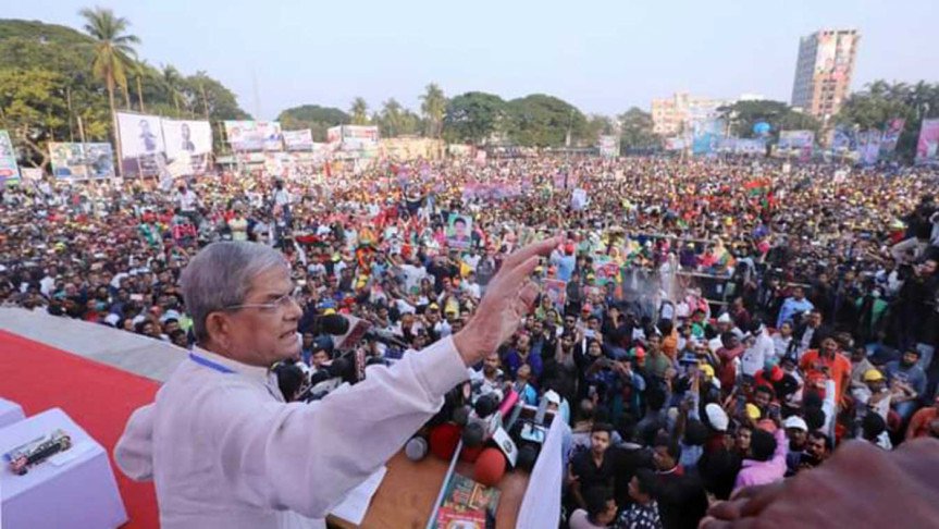 রাজশাহীর ঐতিহাসিক মাদ্রাসা মাঠে আজ শনিবার বিকেলে বিভাগীয় গণসমাবেশে ফখরুল এসব কথা বলেন। সকাল পৌনে ১১টার দিকে বিএনপির এই গণসমাবেশ শুরু হয়।