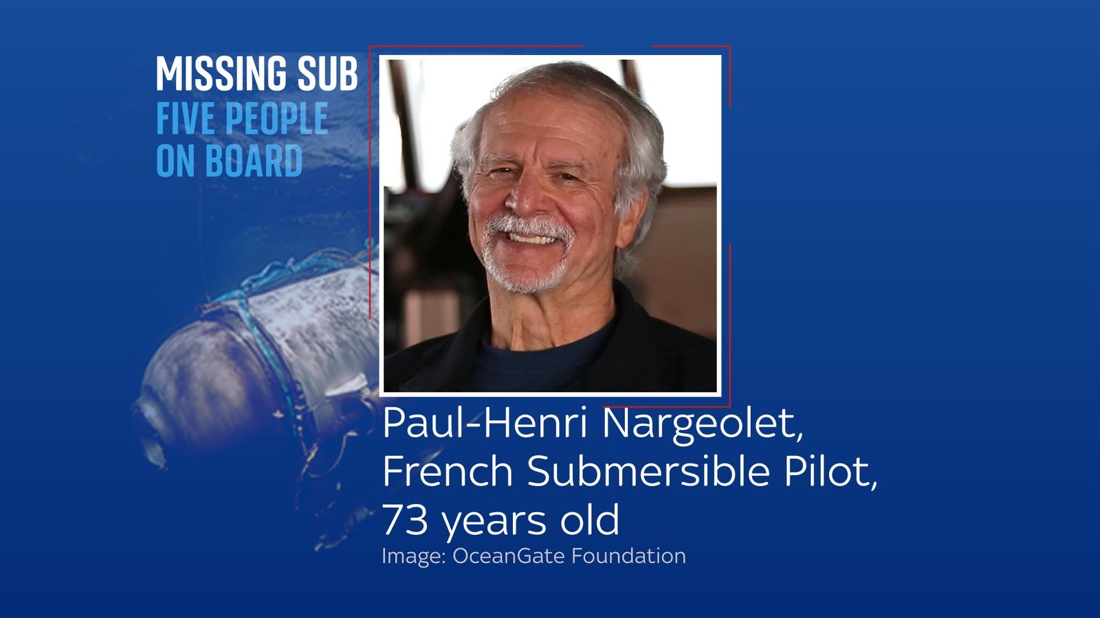 সাবমেরিনে থাকা পাঁচ যাত্রীর মধ্যে রয়েছেন ব্রিটিশ ধনকুবের ৫৮ বছর বয়সী হামিশ হার্ডিং, ব্রিটিশ-পাকিস্তানি ধনাঢ্য ব্যবসায়ী ৪৮ বছর বয়সী শাহজাদা দাউদ, তার ছেলে ১৯ বছর বয়সী সুলেমান দাউদ, ৭৭ বছর বয়সী ফরাসি অভিযাত্রী পল-হেনরি নারজিওলেট এবং ওশানগেটের প্রধান নির্বাহী ৬১ বছর বয়সী স্টকটন রাশ।