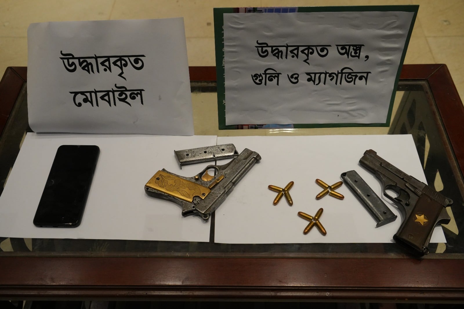 সংবাদ সম্মেলনে ডিবির অতিরিক্ত কমিশনার শফিকুল ইসলাম আরও বলেন, মুছাব্বিরকে গুলি করেন দুজন। এর মধ্যে একজন জিন্নাত, আরেকজন রহিম। জিন্নাতকে আগেই গ্রেপ্তার করা হয়েছে। এই দুজন টাকার বিনিময়ে গুলি করেছেন। ঘটনার সিসিটিভি ফুটেজেও তাঁদের দেখা গেছে। হত্যাকাণ্ডে ব্যবহৃত ২টি বিদেশি পিস্তল, ২টি ম্যাগাজিন ও ১২টি গুলি উদ্ধার করা হয়েছে।