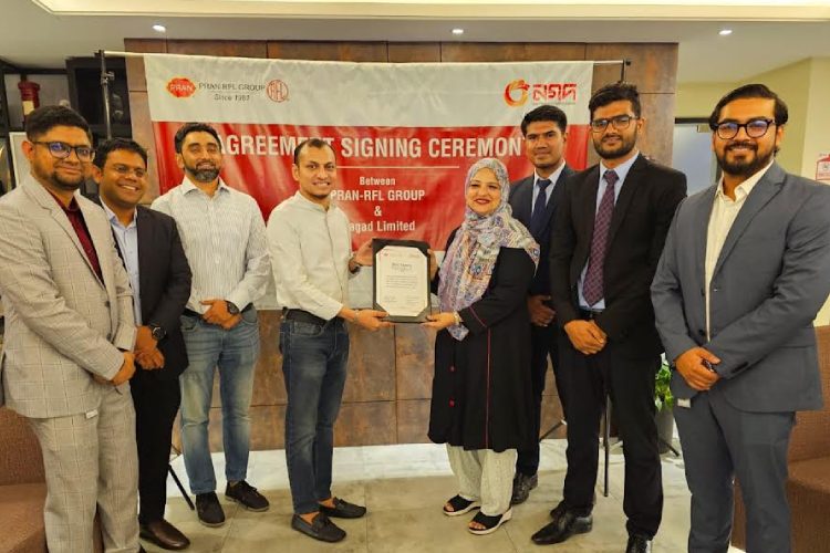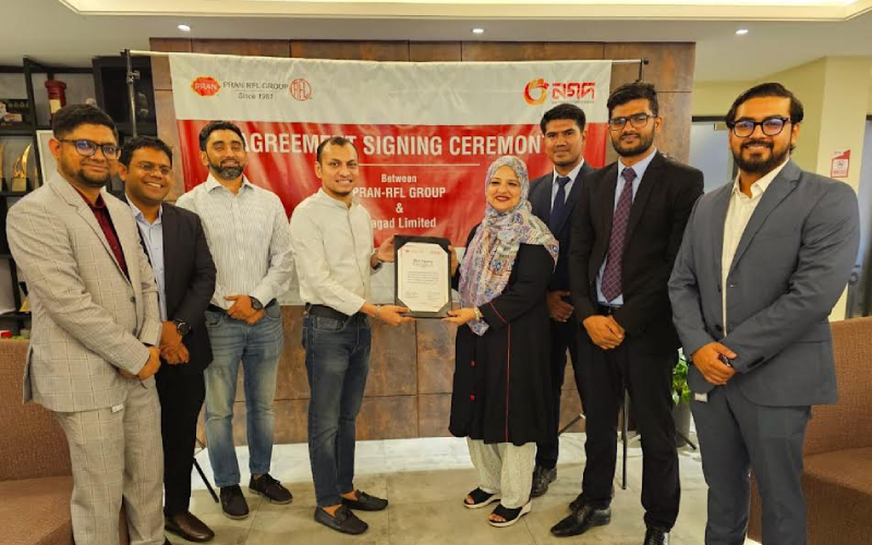 দেশের অন্যতম বৃহৎ ভোক্তা পন্য উৎপাদনকারী শিল্পগোষ্ঠী প্রাণ ও আরএফএলের সাথে ডিজিটাল পেমেন্ট ও আধুনিক লেনদেন বিষয়ে একটি চুক্তি করেছে দেশের শীর্ষস্থানীয় মোবাইল আর্থিক সেবা প্রতিষ্ঠান নগদ।