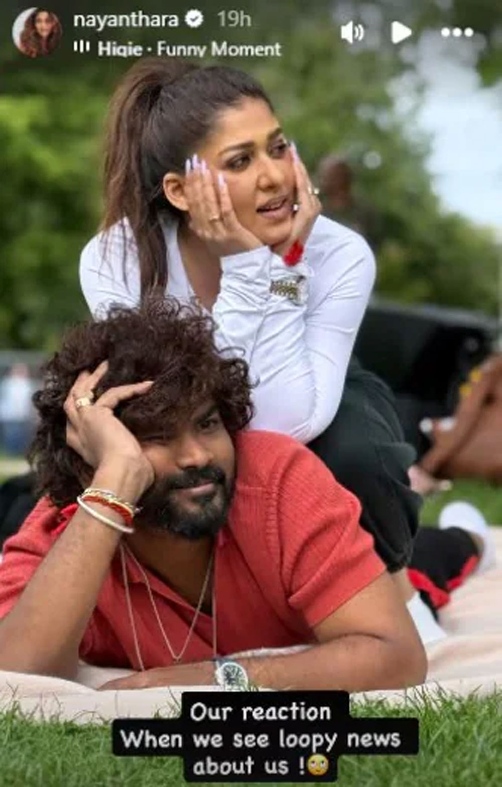এ ছবিতে নয়নতারা লেখেন, “আমরা যখন আমাদের নিয়ে পাগলাটে নিউজ দেখি, তখন আমাদের প্রতিক্রিয়া।” নেটিজেনরা এটিকে ইঙ্গিতপূর্ণ পোস্ট বলছেন। তাদের ভাষ্য, “নয়নতারা এই বক্তব্যের মাধ্যমে বিবাহবিচ্ছেদের গুঞ্জন উড়ালেন।”