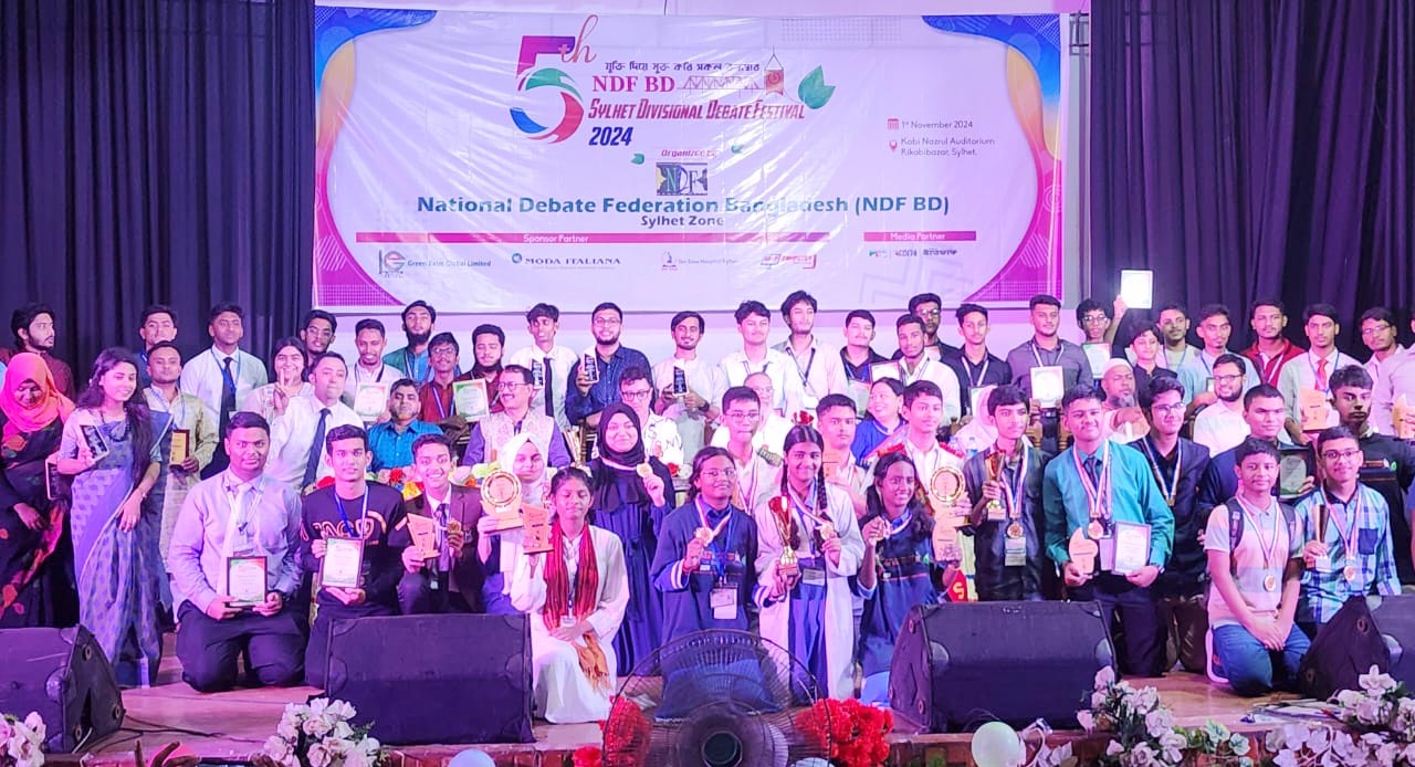 ‘যুক্তি দিয়ে মুক্ত করি সকল রুদ্ধদ্বার’ এই স্লোগান কে ধারণ করে অনুষ্ঠিত হলো ন্যাশনাল ডিবেট ফেডারেশন বাংলাদেশ (এনডিএফ) বিডি সিলেট বিভাগীয় বিতর্ক উৎসব-২৪।